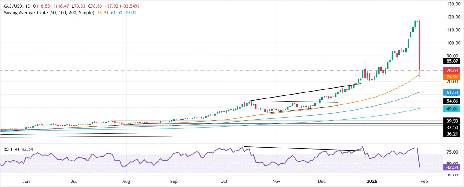 Silver had been on a tear that would make a meme coin blush. Up 250% in the past year. Up 57% in January alone. Citigroup was projecting $150/oz within three months. Physical COMEX inventories hit their lowest levels in years.